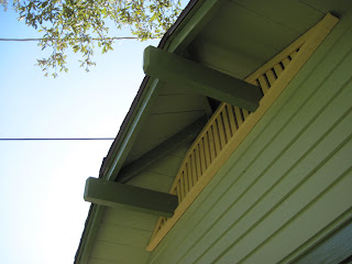 The house we were asked to build a shed for is a classic wood-framed Craftsman bungalow with a full-width front porch with tapered piers, a jerkinhead roof with broad eaves supported by outriggers, and an attached porte cochere. The house came with a large, dilapidated modern shed when the current owners purchased it, but which was deemed not worthy of repairing. They came to Historic Shed for a new attractive, traditional looking shed that would enhance their yard and meet the local historic district Design Guidelines.