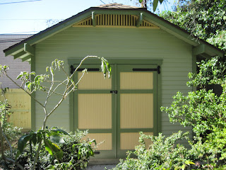 Designed for the owners by architect Alan Dobbs, the new shed incorporates the siding and trim details, roof-line, and outriggers of the main house while adding traditional elements such as the bead-board carriage house style doors. At 12'x12', the storage shed did not require a permit for construction, but did have to undergo design approval by historic preservation staff.